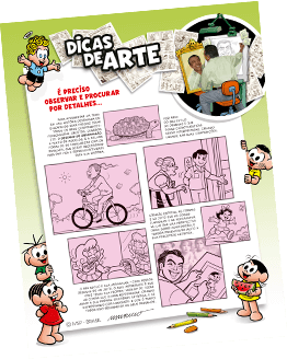 Uma seção com informações sobre Mauricio de Sousa, o criador da Turma, e um pouco mais sobre o processo de criação das histórias.